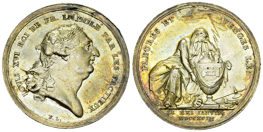 France, Royaume. Louis XVI (1774-1793). AV Médaille 1793 (30 mm, 9.30 g). Mort du roi, par Loos. Av. LOUIS XVI ROI DE FR. IMMOLÉ PAR LES FACTIEUX, Tête de Louis XVI à droite.