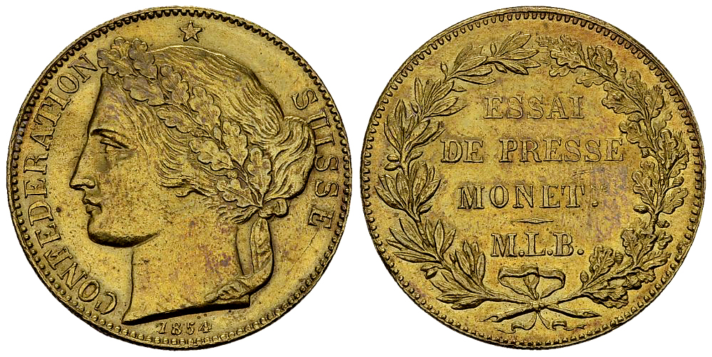 Lot 398. Schweiz, ME Essai in 2 Franken-Grösse 1854