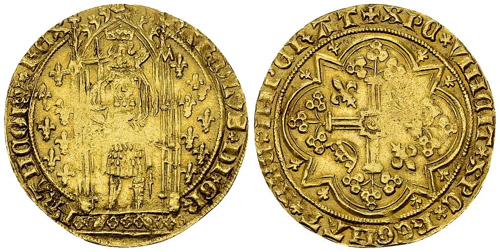 Av. KAROLVS DI GR FRAnCORV REX, Charles V, couronné, debout sous un