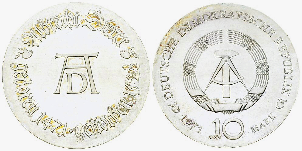 Deutsche Demokratische Republik DDR. AR 10 Mark 1971 (A) (16.98 g), Dürer.