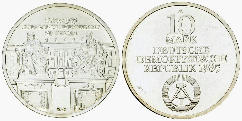 Deutsche Demokratische Republik DDR. AR 10 Mark 1985 A (17.01 g), Humboldt-Universität.