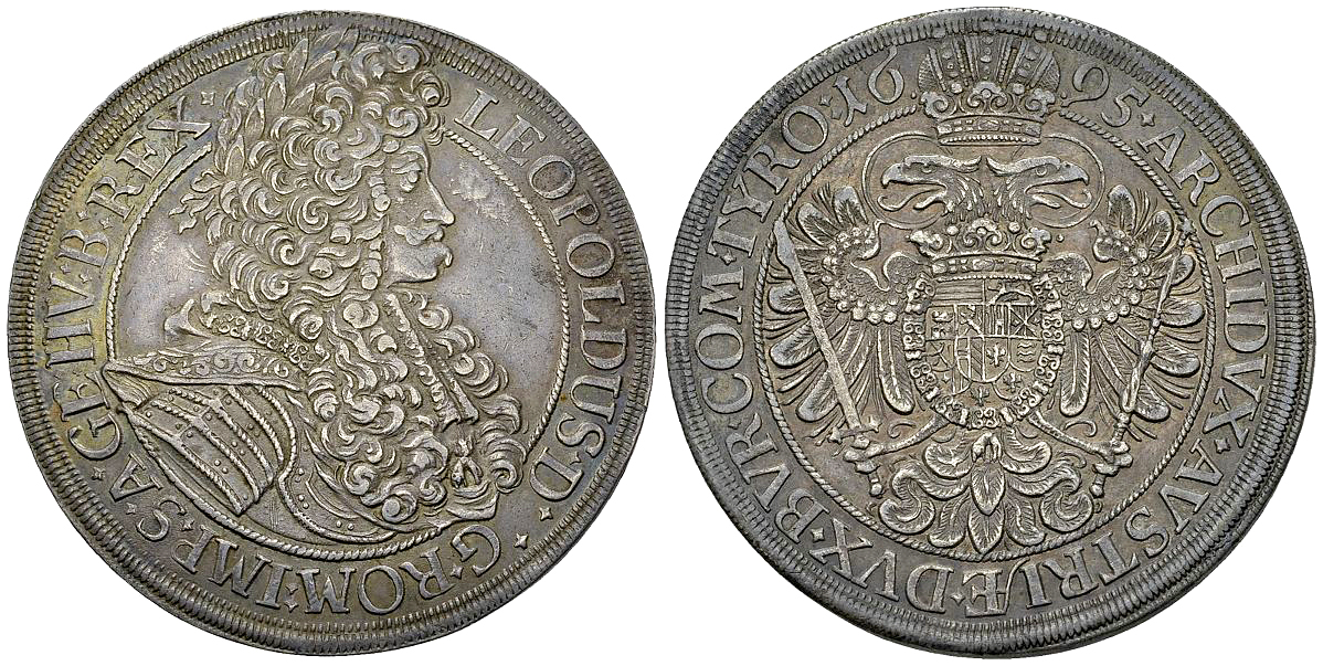RDR. Leopold I (1657-1705). AR Taler 1695 (28.24 g), Wien. Dav. 3229; Her. 595.