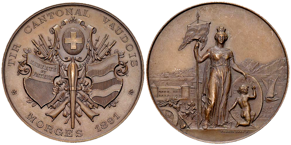 Lot 425. Morges, AE Schützenmedaille 1891, Tir cantonal