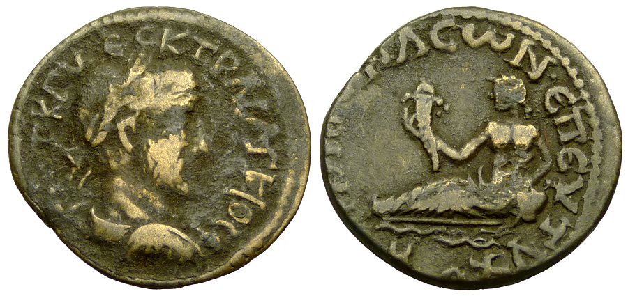 K TPAI ΔEKIO CE, Laureate, draped and cuirassed bust right. Rev. ΦIΛOMHΛEWN