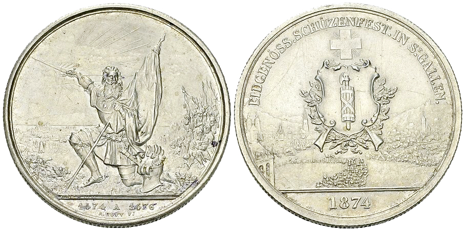 Schweiz, Eidgenossenschaft. AR 5 Franken 1874 (24.96 g). Eidgenössisches Schützenfest in St. Gallen. HMZ 2-1343j.