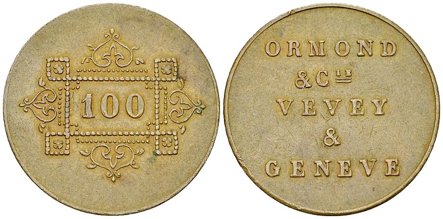 Ormond & Cie Vevey & Geneve. AE Jeton o.J. (1852-1903). (32 mm, 8.41 g).