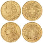 Lot 487. Schewiz, Lot von 2 AV 20 Franken 1935 B