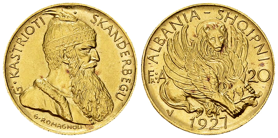 Lot 234. Zogu I AV 20 Franga Ari 1927