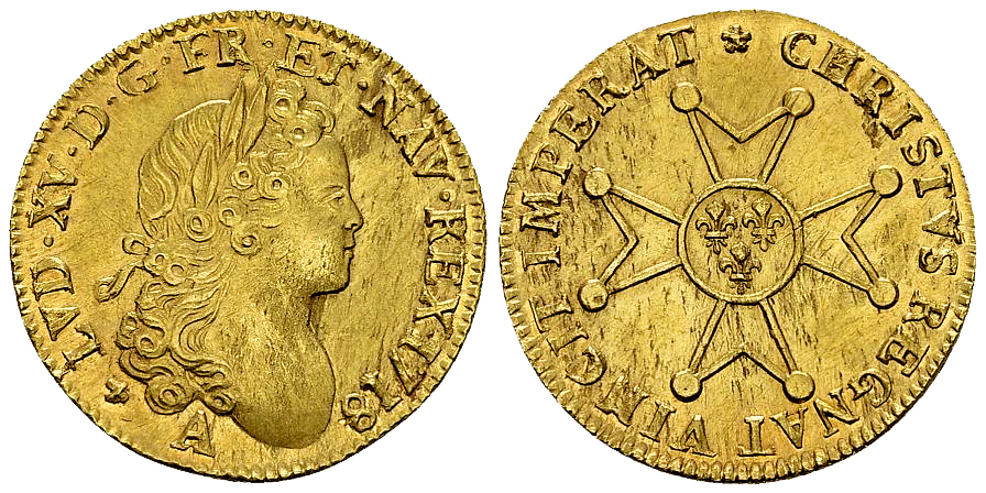 Lot 274. Louis XV, Louis d'or à la croix de Malte 1718 A, Paris