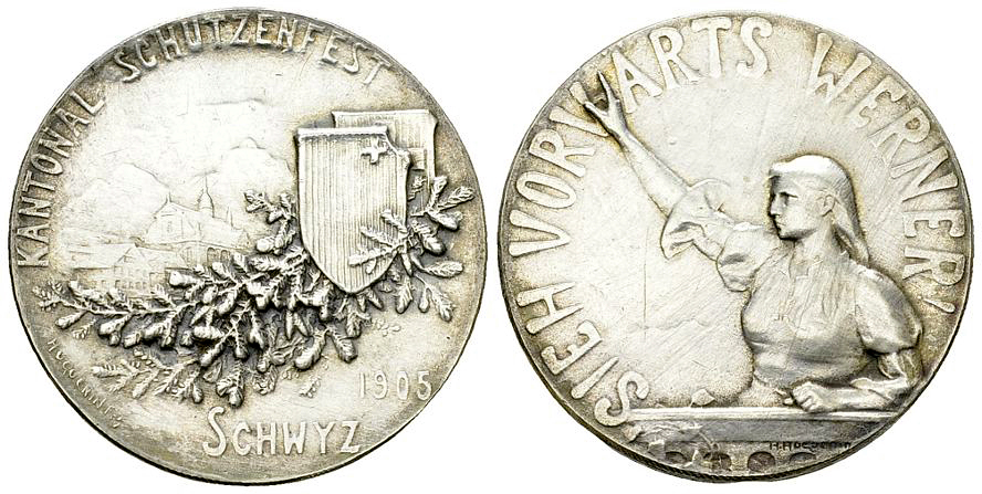 Schweiz, Schwyz. AR Medaille 1905 (28 mm, 9.52 g), auf das Kantonal-Schützenfest. Richter 1079a.