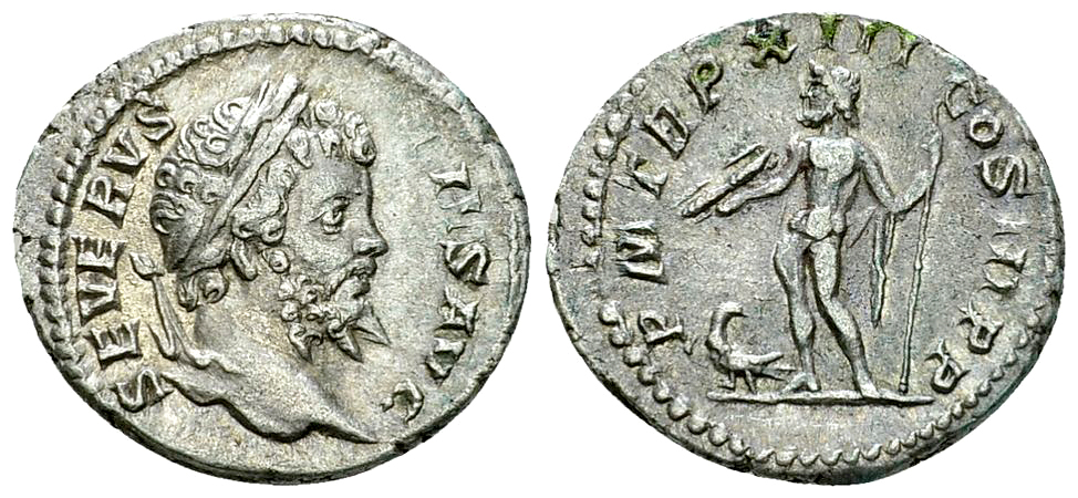 Septimius Severus (193-211 AD). AR Denarius (18-20 mm, 3.59 g), Rome, 205. Obv. SEVERVS PIVS AVG, Laureate