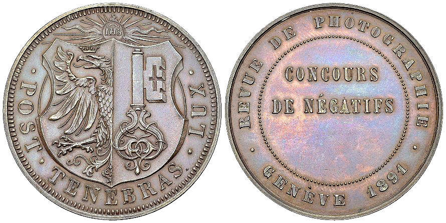 Schweiz, Genf/Genève. AE Medaille 1891 (37 mm, 26.48 g), Concours de négatifs de la Revue de Photographie.