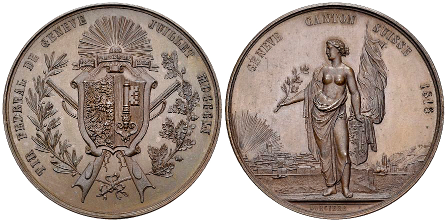 Lot 553. Genf, AE Schützenmedaille 1851, Tir fédéral