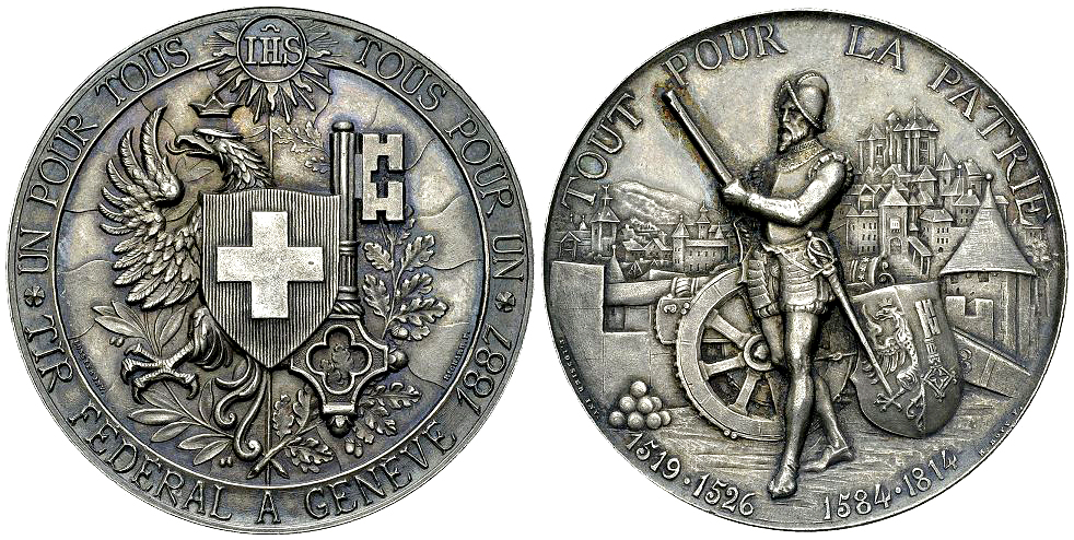 Schweiz, Genf/Genève. AR Schützenmedaille 1887 (45 mm, 38.71 g), Tir fédéral.