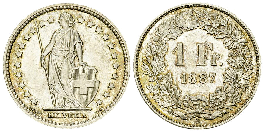 Schweiz, Eidgenossenschaft. AR 1 Franken 1887 (5.02 g). KM 24.