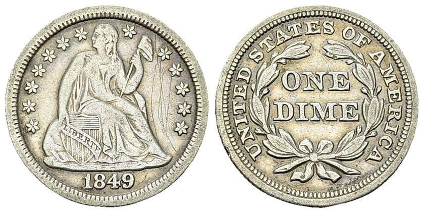 USA. AR Dime 1849 (2.64 g). KM 63.2.