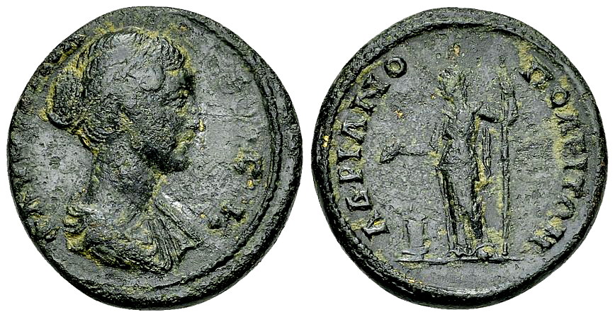ΦAVCTEINA CEBACTH, Draped bust to right. Rev. AΔPIANOΠOΛEITΩN, Female