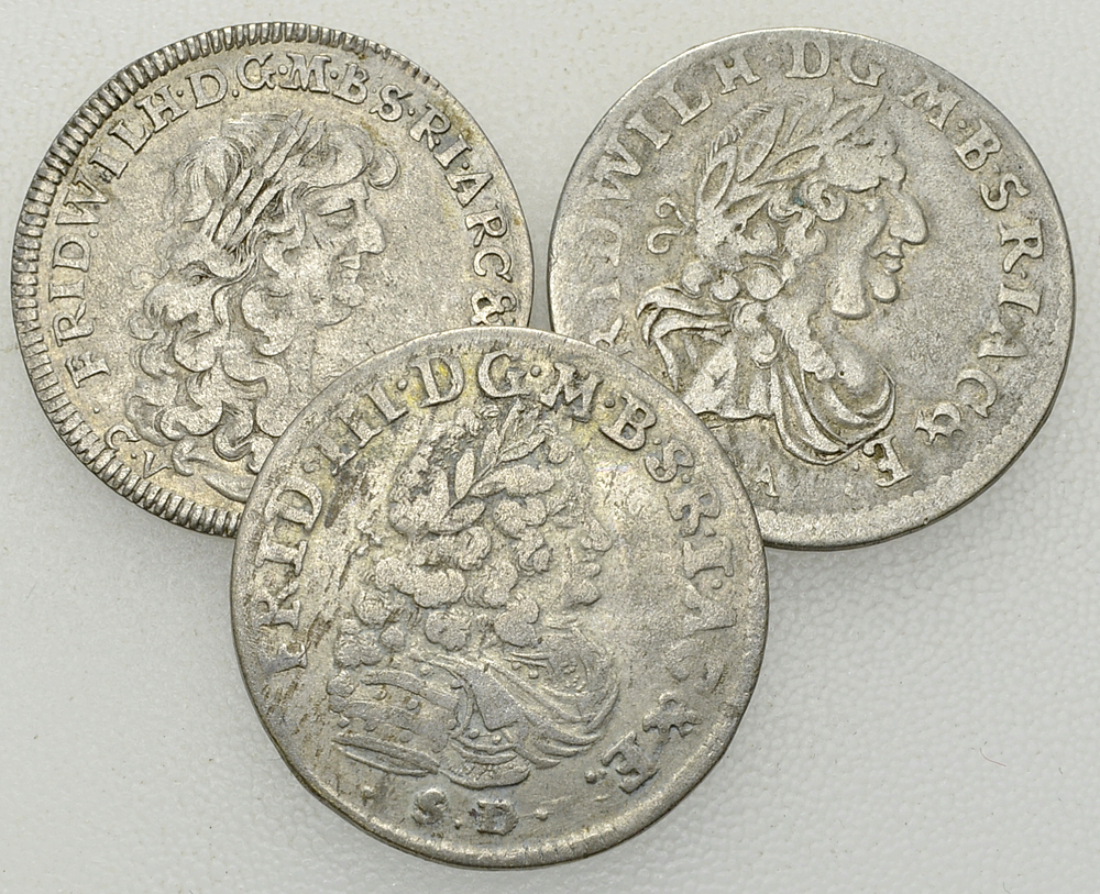 Deutschland. Brandenburg-Preussen. Lot von 3 (drei) AR 6 Gröschern: 1674, 1685 und 1699.