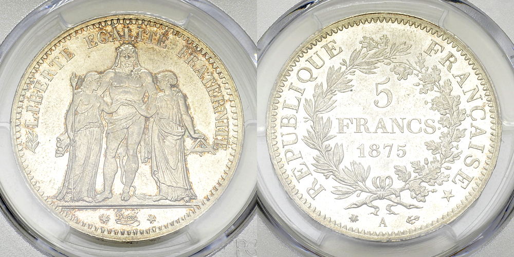 Lot 208. France, AR 5 Francs 1875 A, MS65