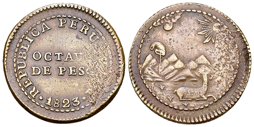 Lot 559. Peru CU 1/8 Peso 1823, Lima