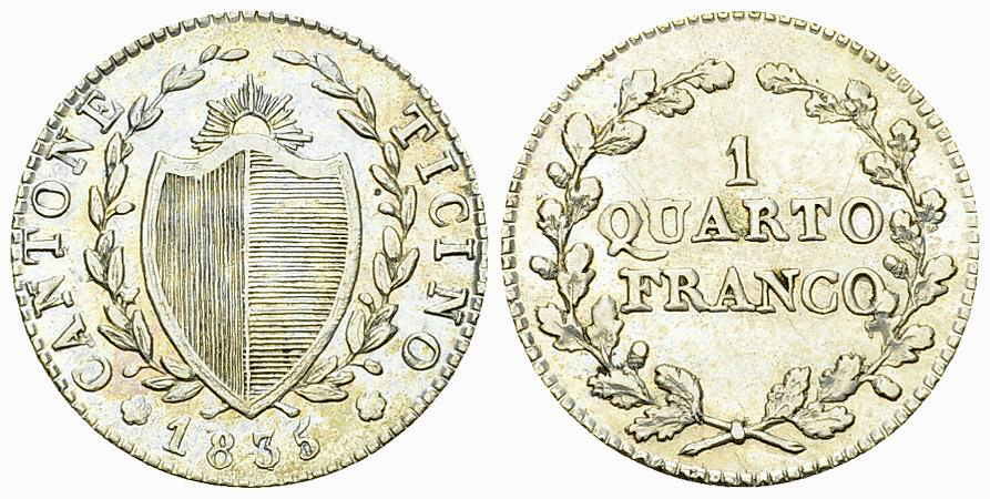 Lot 453. Tessin, AR Quarto Franco 1835