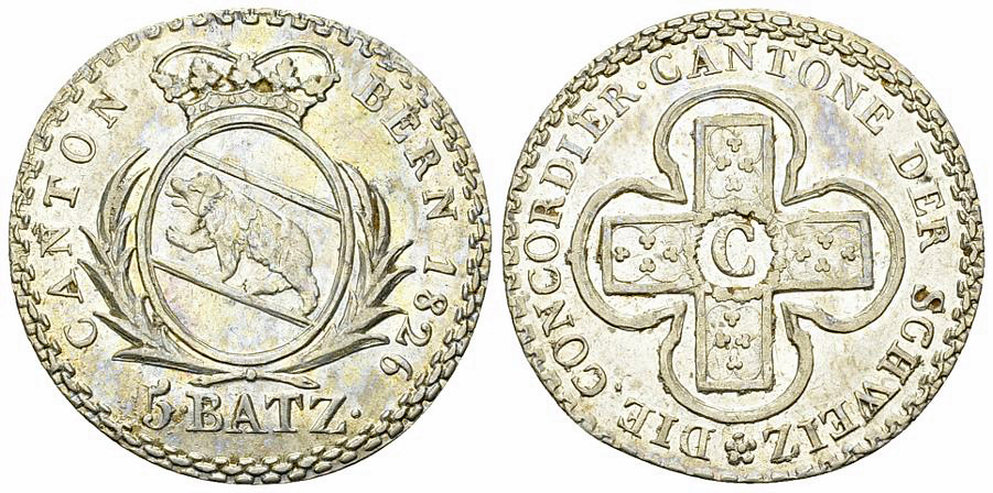 Schweiz, Bern. AR 5 Batzen 1826 (27 mm, 4.07 g). HMZ 2-234f.
