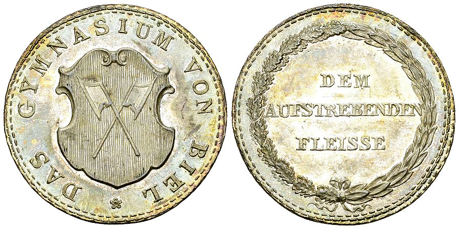 GYMNASIUM VON BIEL, Stadtwappen. Rv. DEM / AUFSTREBENDEN / FLEISSE im