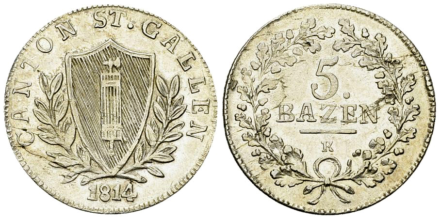 Schweiz, St. Gallen, Kanton. AR 5 Batzen 1814 (26 mm, 3.95 g).