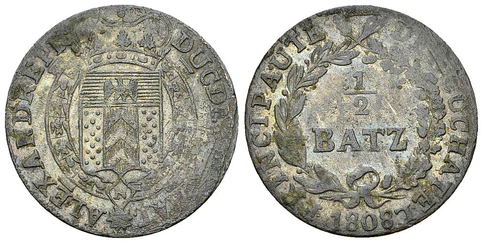 Lot 425. Neuenburg, BI 1/2 Batzen 1808