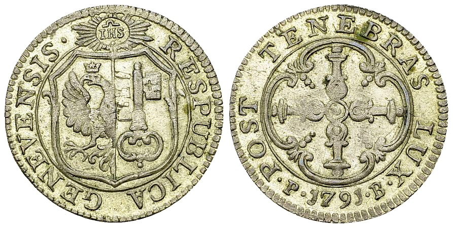 Schweiz, Genf/Genève. BI 3 Sols 1791 (1.95 g). HMZ 2-347g.