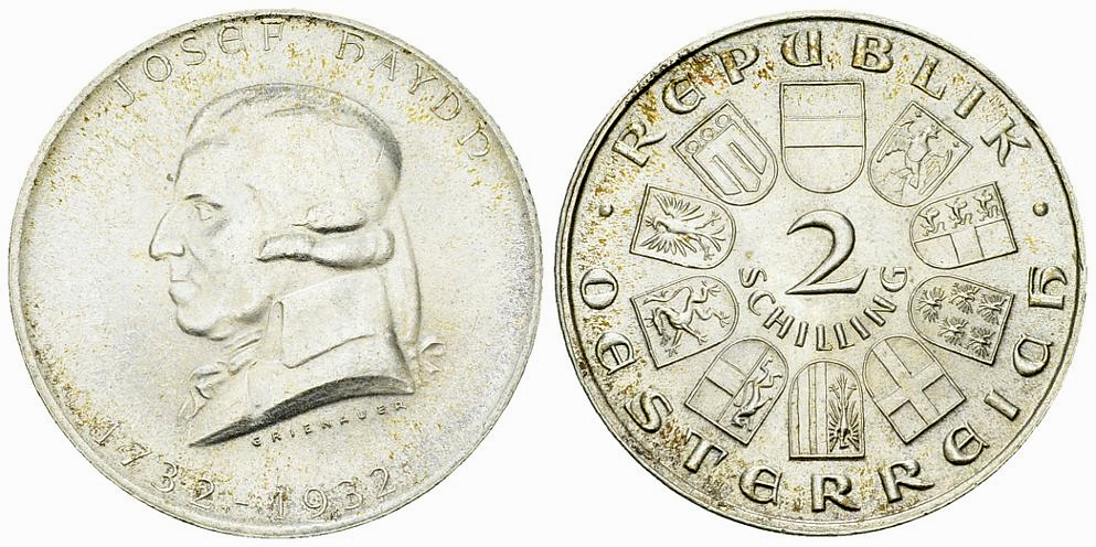 Los 64. Österreich, AR 2 Schilling 1932, Haydn