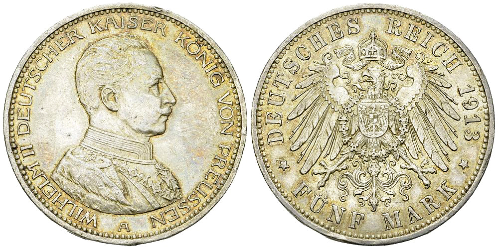 Deutschland, Preussen. Wilhelm II. AR 5 Mark 1913 A (27.74 g). AKS 130.