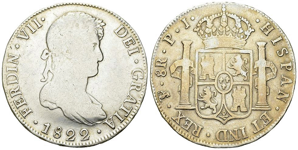 Boliva. Fernando VII. AR 8 Reales 1822 PTS JL (39 mm, 26.67 g), Potosì. KM 84.