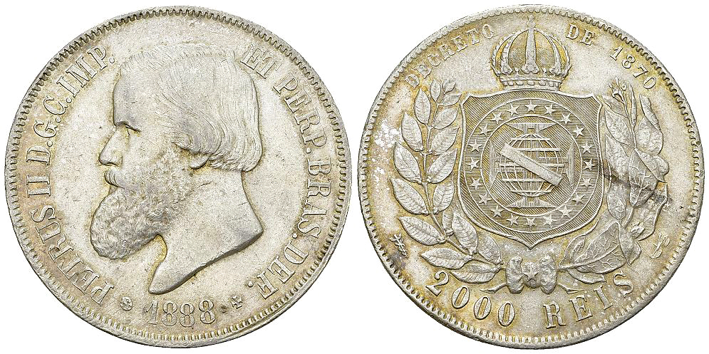 Brazil. Pedro II. AR 2000 Reis 1888 (25.40 g).