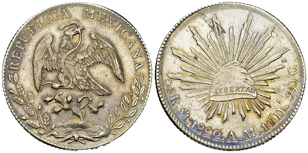 Mexico, Republic. AR 8 Reales 1892 Mo AM (27.03 g), Mexico City.