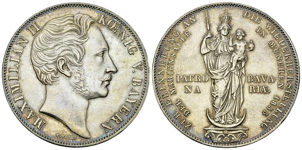 Deutschland, Bayern. Maximilian II. AR Doppelgulden (Mariengulden) 1855 (21.16 g).