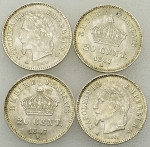 Lot 517. France, Lot of 4 AR 20 Cents 1867 A
