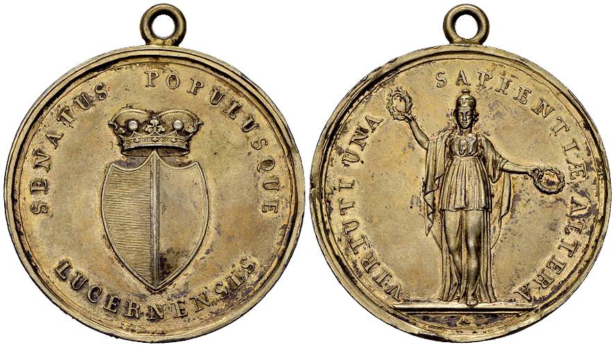 Schweiz, Luzern. Vergoldete AR Schulprämie o. J. (erste Hälfte 19. Jhd.) (42 mm, 32.42 g).