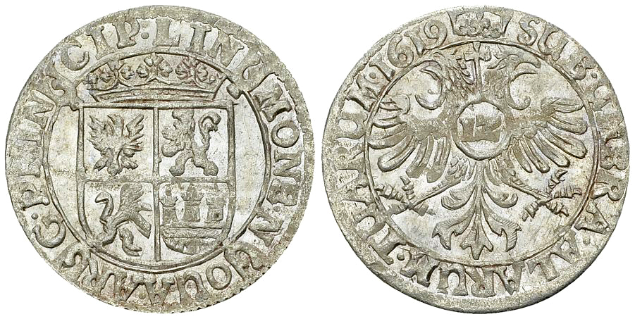 (1614-1629). AR 12 Kreuzer 1619 (4.15 g), Linchamps. Imitation des escalins (Adlerschillinge) des