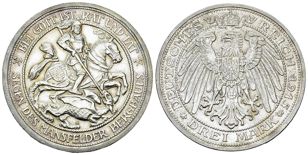 Lot 154. Preussen, AR 3 Mark 1915, Mansfelder Bergbau