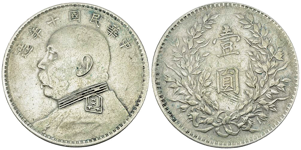 China, Republic. AR Dollar Year 10 = 1921 (39 mm, 26.82 g).