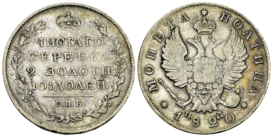 . AR 1/2 Rouble (Poltina) 1820 (10.01 g).