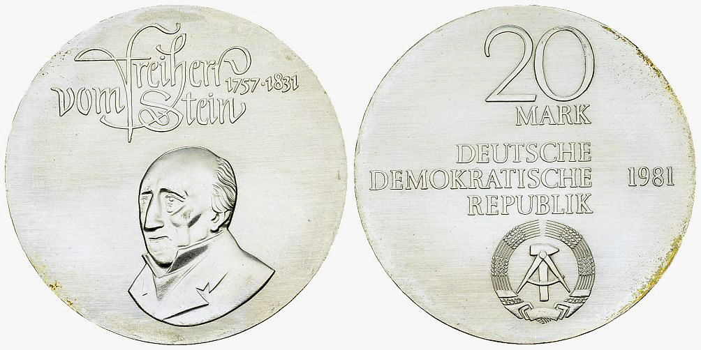 Deutsche Demokratische Republik. AR 20 Mark 1981 (A) (20.96 g), vom Stein. AKS 837.