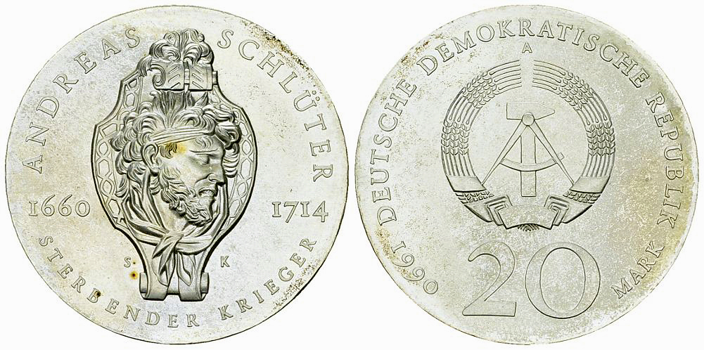 Deutsche Demokratische Republik. AR 20 Mark 1990 A (20.93 g), Schlüter. AKS 847.