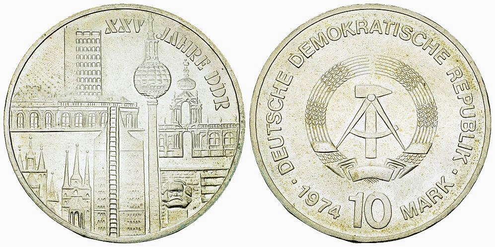 Lot 268. DDR, AR 10 Mark 1974, XXV Jahre DDR