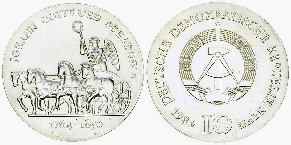 Deutsche Demokratische Republik DDR. AR 10 Mark 1989 A (17.02 g), Schadow.