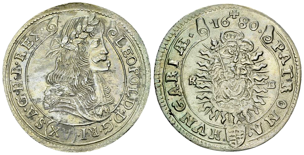 RDR. Leopold I (1657-1705). AR 15 Kreuzer 1680 KB (6.40 g), Kremnitz.