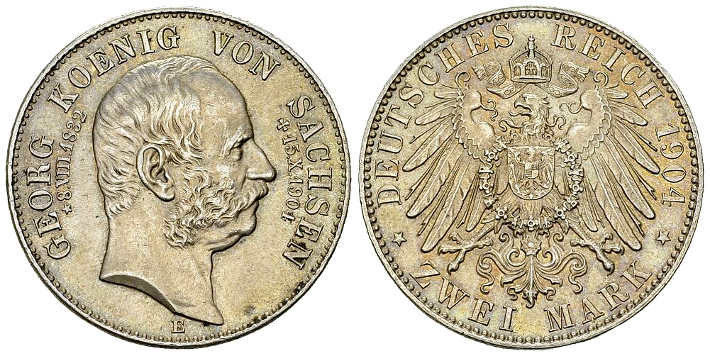 Lot 165. Sachsen, AR 2 Mark 1904 E, auf seinen Tod