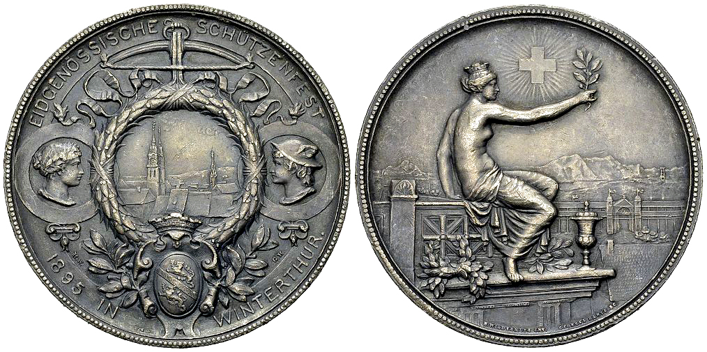 Schweiz, Zürich. Winterthur. AR Schützenmedaille 1895 (45 mm, 38.78 g), auf das Eidgenössische Schützenfest.