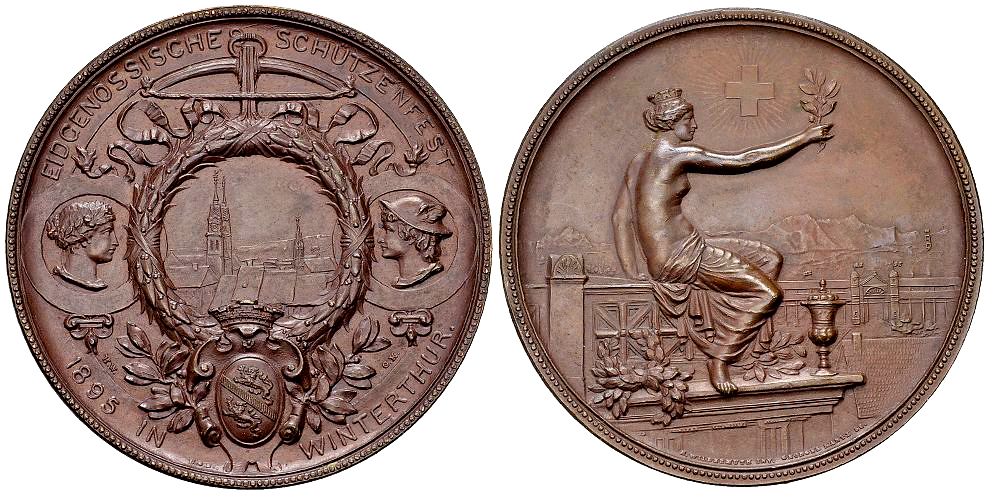 Schweiz, Zürich. Winterthur. AE Schützenmedaille 1895 (45 mm, 38.05 g), auf das Eidgenössische Schützenfest.